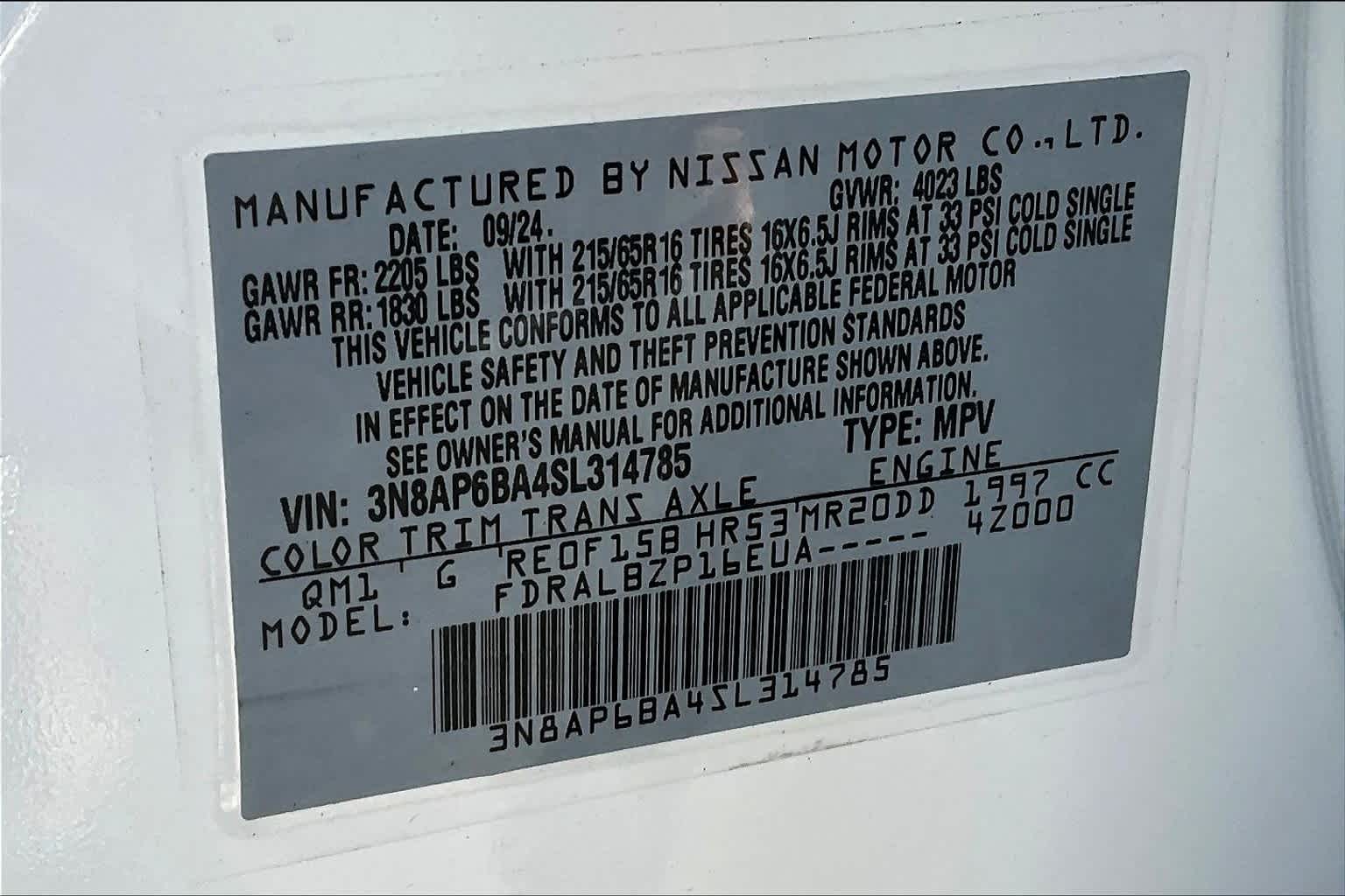 S | 3 milesStock # N250024 | VIN # 3N8AP6BA4SL314785