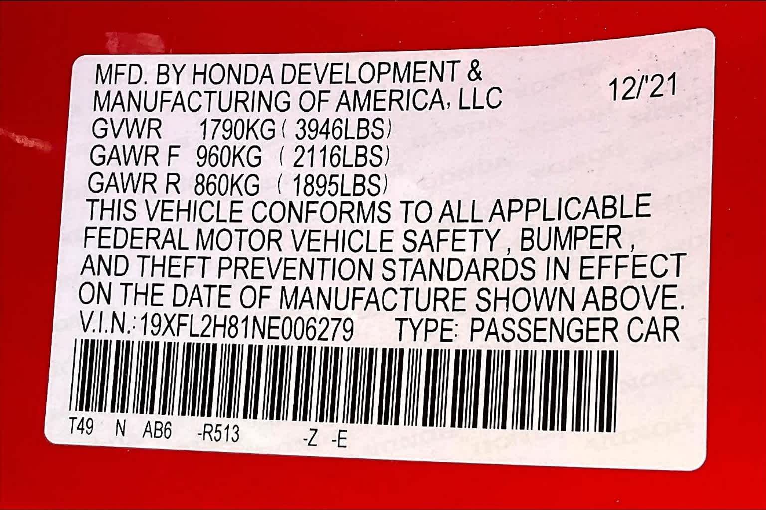 Sport | 29,099 milesStock # W500447A | VIN # 19XFL2H81NE006279