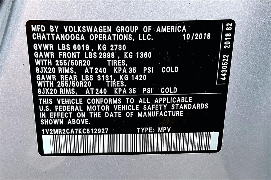 SEL | 62,028 milesStock # 24IC501 | VIN # 1V2MR2CA7KC512927