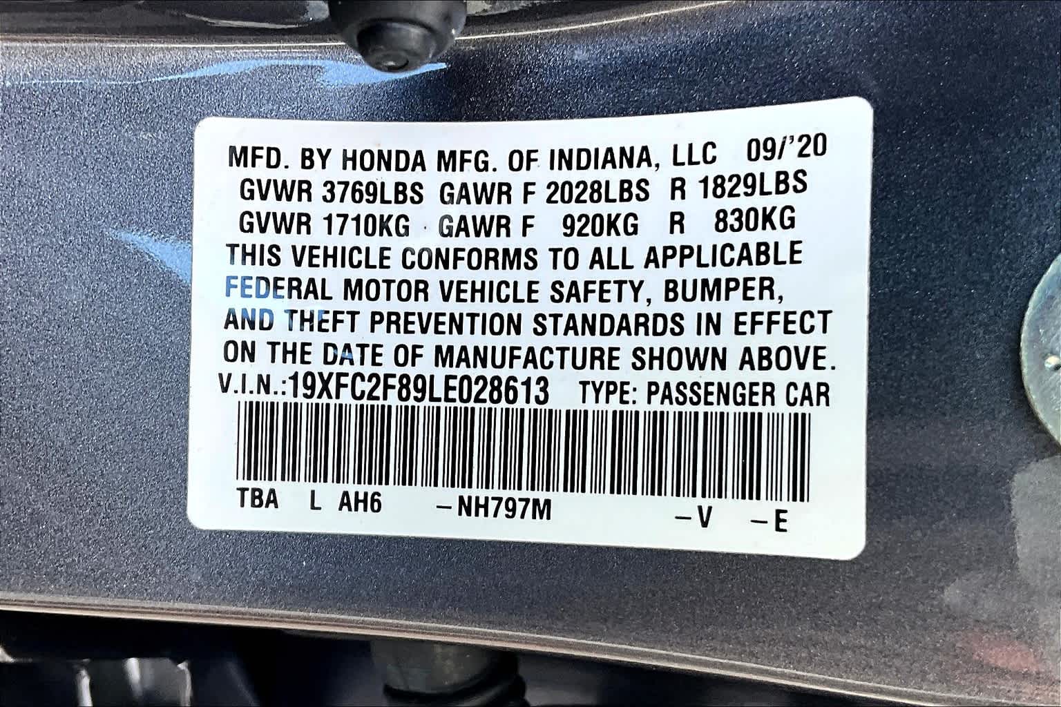 Sport | 11,445 milesStock # CL12834A | VIN # 19XFC2F89LE028613