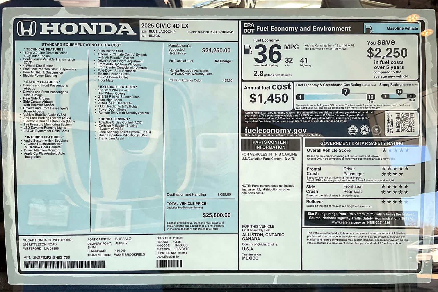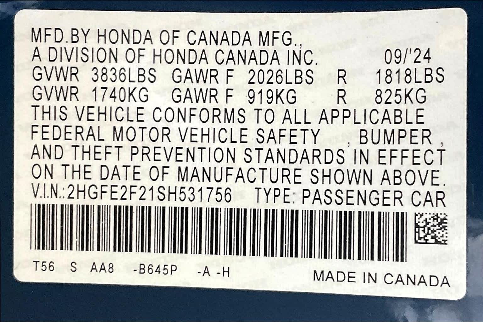 LX | 7 milesStock # W500465 | VIN # 2HGFE2F21SH531756