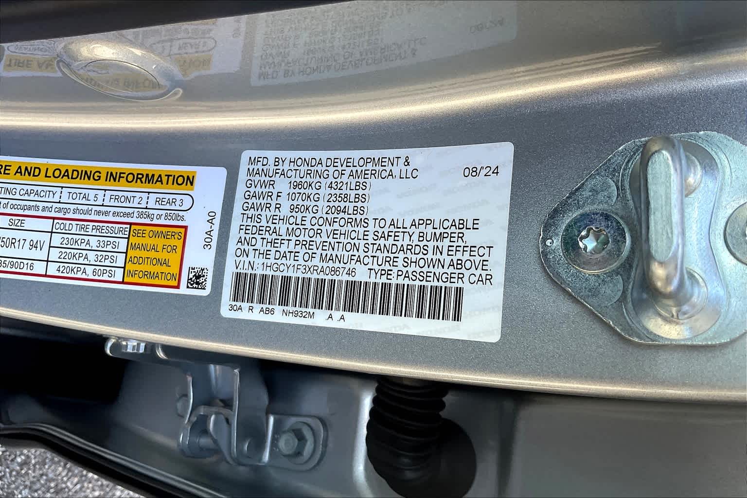 EX | 7 milesStock # W401178 | VIN # 1HGCY1F3XRA086746