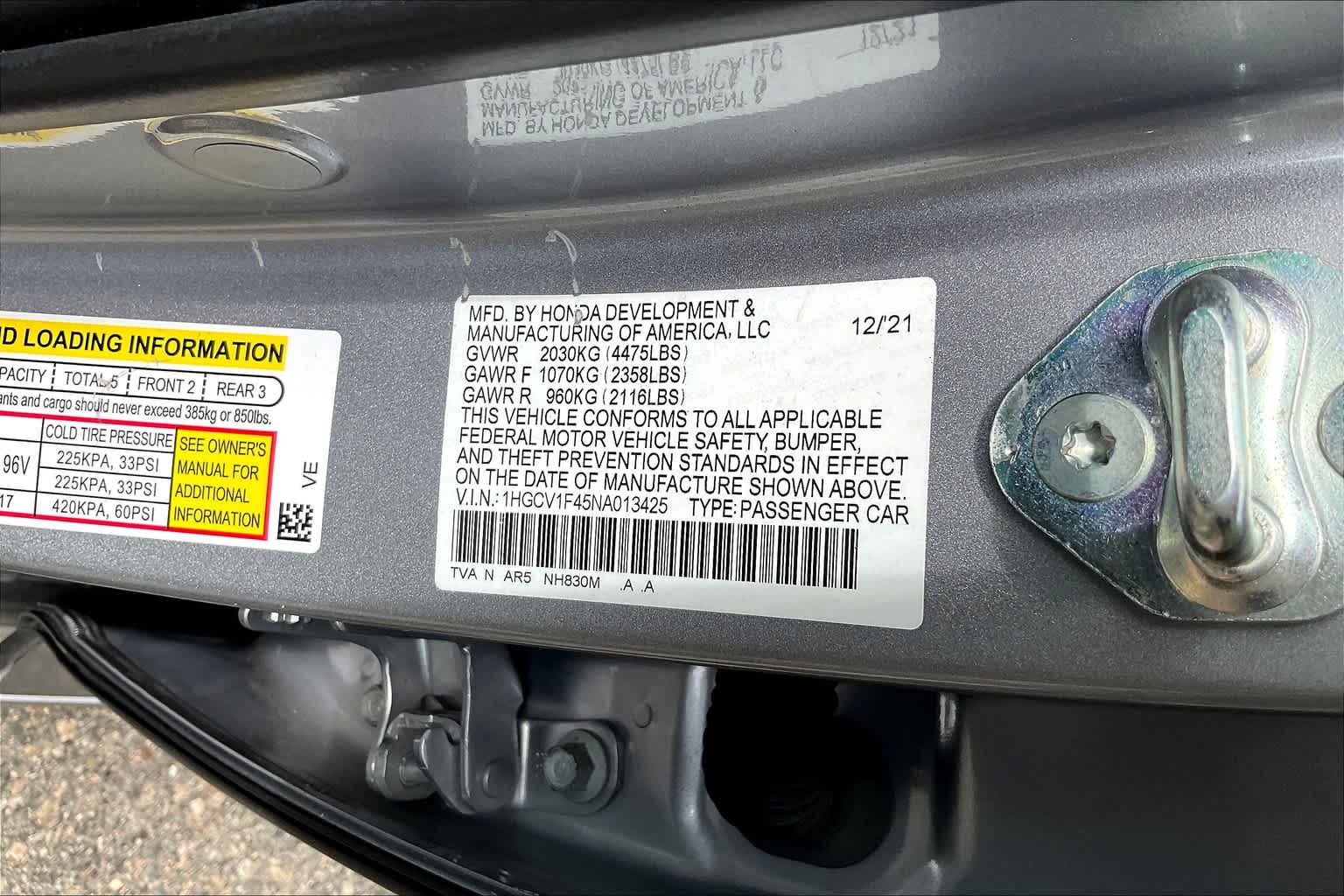 Sport SE | 35,395 milesStock # PHW44559 | VIN # 1HGCV1F45NA013425