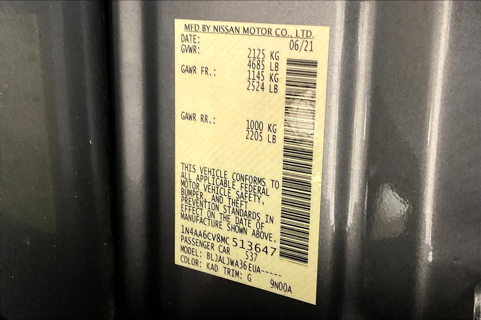SV | 53,544 milesStock # PN44261 | VIN # 1N4AA6CV8MC513647