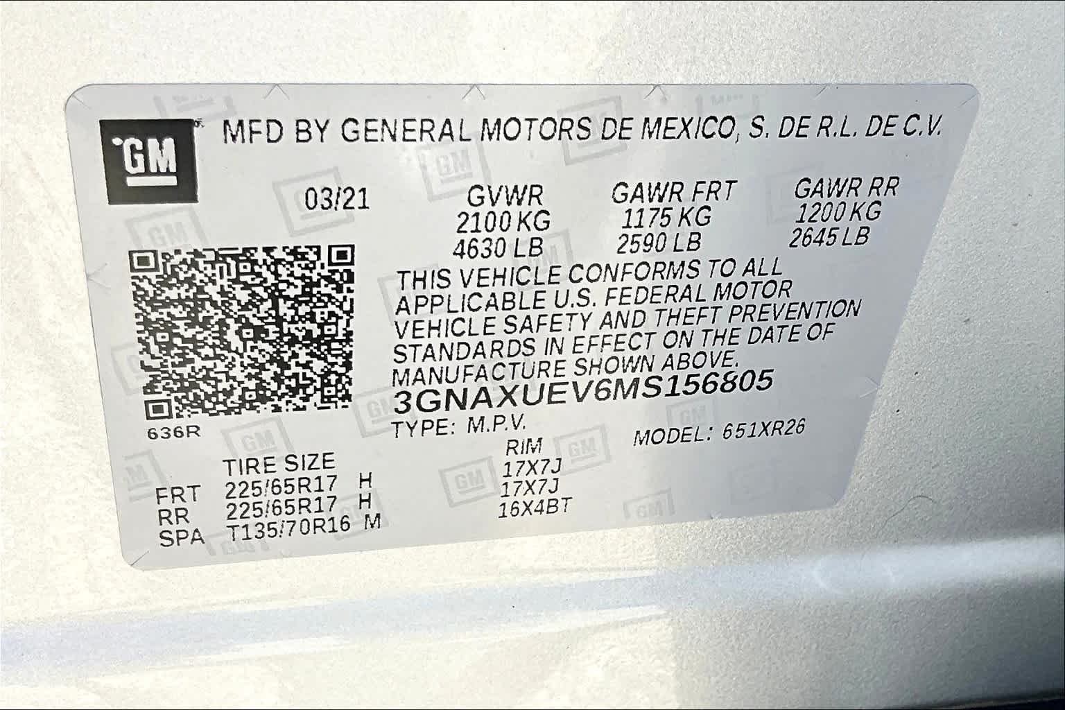 LT | 26,501 milesStock # PLW43554 | VIN # 3GNAXUEV6MS156805